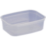 Mikrózható ételtartó doboz víztiszta színű, sarkainál bordázott, masszív, kitűnő hőálló képességgel. Főételek, főzelékek, húsok, sültek, tészták kiszállítására, újramelegítésére használható. Víztiszta, mikrózható tetővel kapható,ami külön rendelhető!