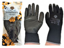 Alapanyag: fekete körkötött 13g poliészter szál gumírozott mandzsettával tenyéren poliuretán merítés