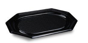 A műanyag, fekete hidegtál tálcák  külön rendelhető víztiszta tetővel, a több személyes hidegkonyhai termékek, sültes tálak, cukrásztermékek tálalásához és kiszállításához megfelelő és dekoratív megoldás.